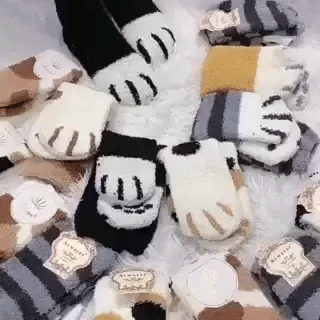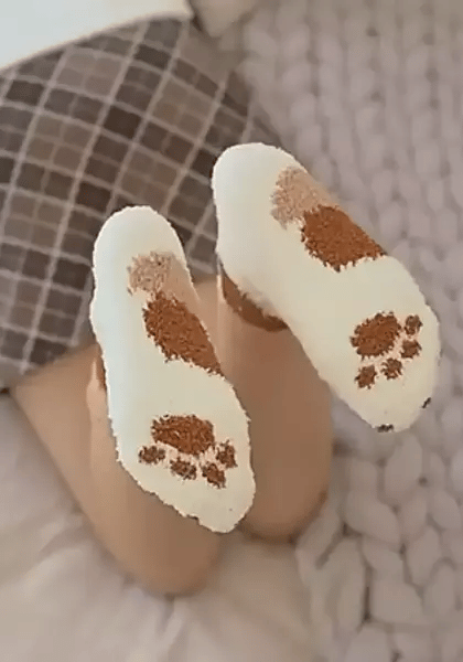 1x Par de calcetines de felpa con diseño de patas de gato