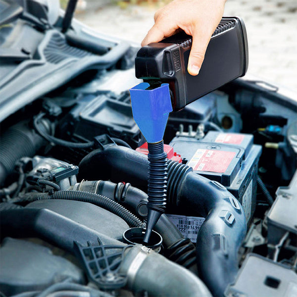El Embudo plegable FlexiFlow está diseñado para facilitar tus tareas de transferencia de líquidos en vehículos. Su diseño extendido evita desbordamientos, y sus mangueras escalables y doblables lo hacen práctico y fácil de transportar.