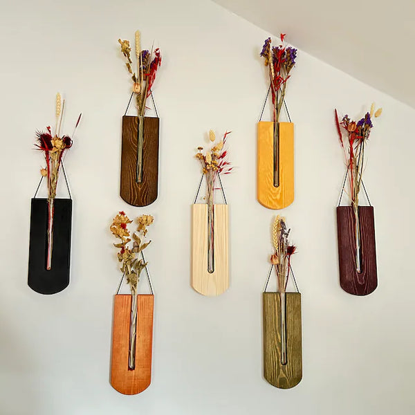 Con "Macetas Pared Madera," puedes personalizar tu decoración con seis acabados distintos. Agrega plantas frescas o secas, crea tu oasis de calma y estilo.